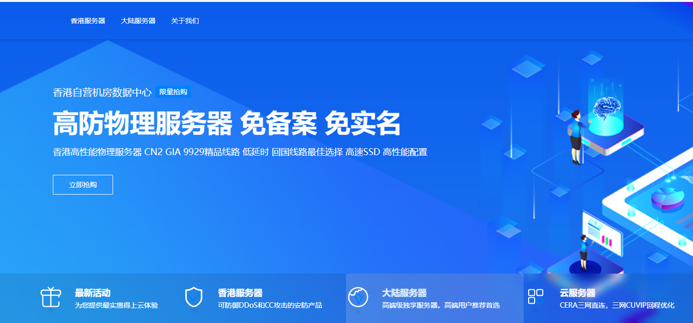 香港物理服务器,大宽带,高防御、免备案,免实名,不限制行业、抗投诉