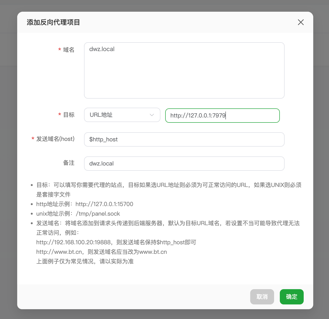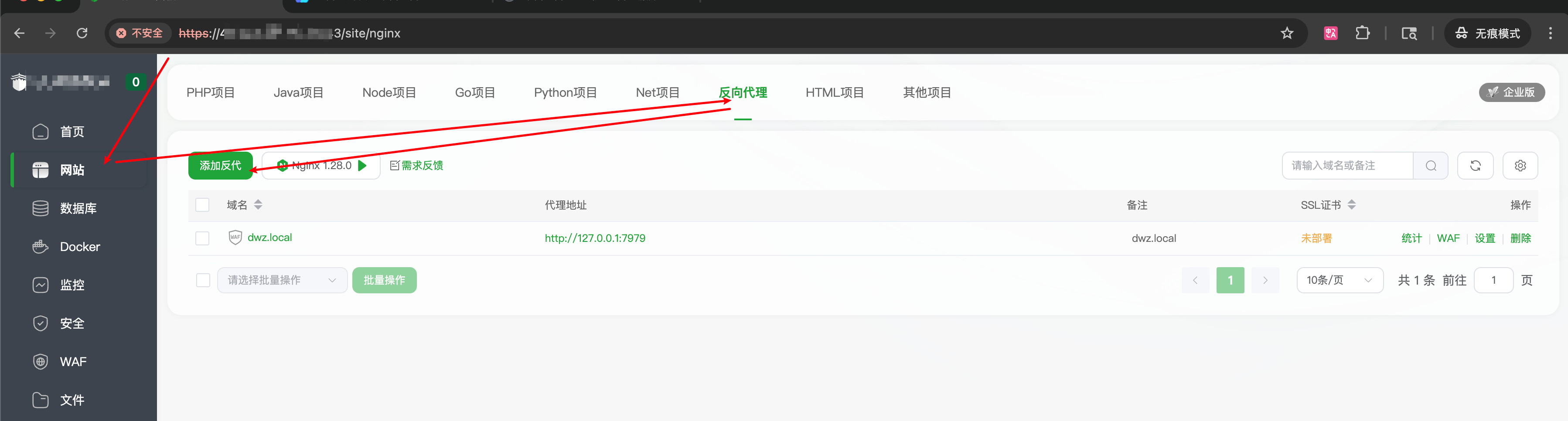 这里有几个域名就添加几个,注意 “http://127.0.0.1:7979” 这个地址在你安装的时候设置的【WEB端口】