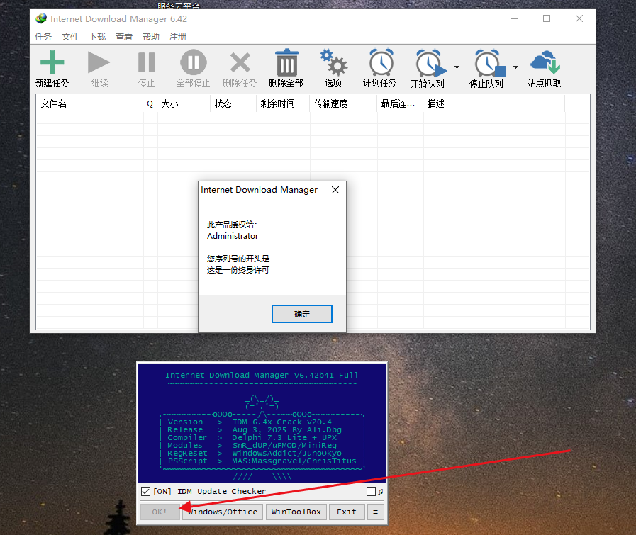 如果要求输入序列号,请尝试输入(帮助 – 关于 IDM 程序 – 注册):
