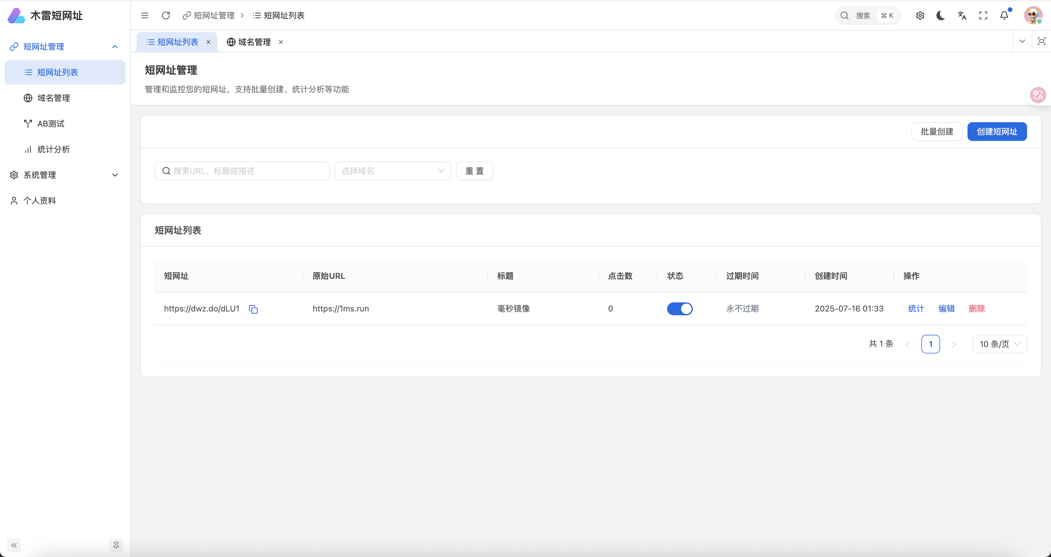 多域名支持: 支持配置多个短链接域名,灵活管理