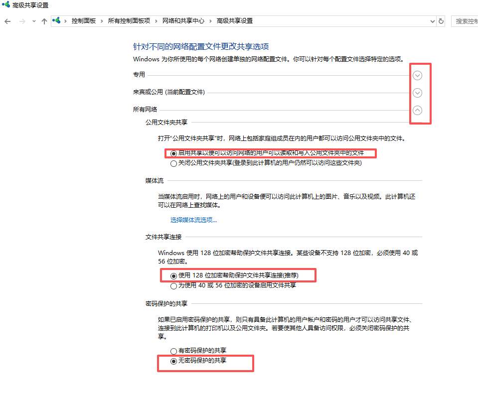 一、控制面板\所有控制面板项\网络和共享中心\高级共享设置