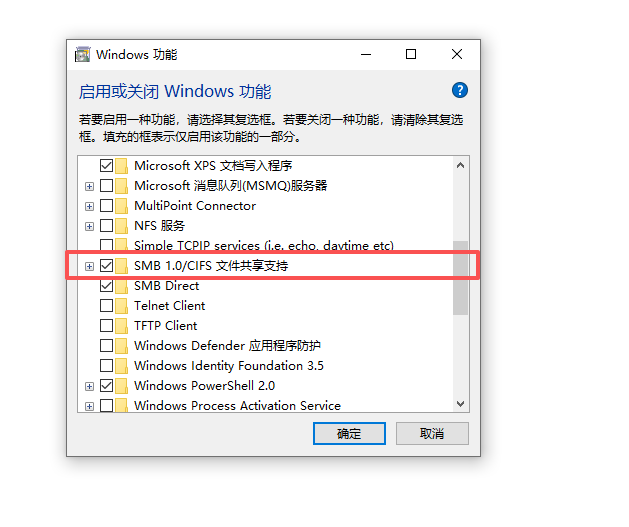 三、控制面板\程序\启用或关闭windows功能\SMB 1.0/CIFS文件共享支持 全部打钩
